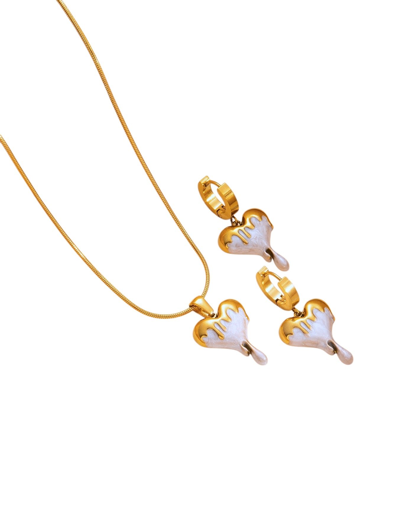 Ατσάλινο σετ με σκουλαρίκια και κολιέ καρδιές – SET017
