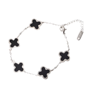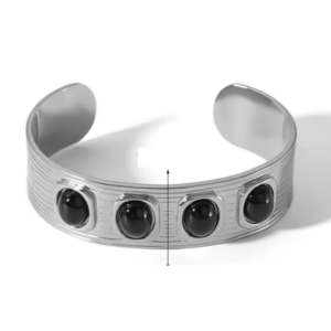 Βραχιόλι ασημί ατσάλι με μαύρες πέτρες αχάτης-BR016