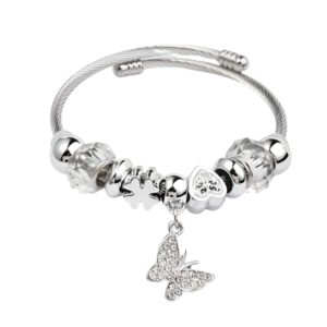 Βραχιόλι ασημί ατσάλι με πεταλούδα κα κρύσταλλα-BR292