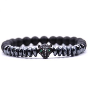 Βραχιόλι αντρικό μαύρο με κεφάλι λεοπάρδαλης με zircon-BR034