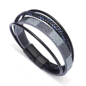 Βραχιόλι αντρικό μαύρο με πολλά επίπεδα-BR059